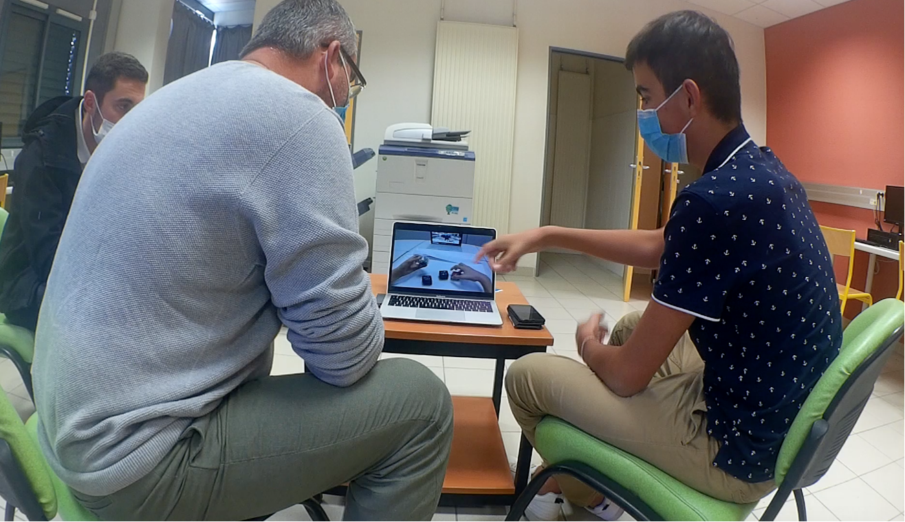 Comme nous venons de le voir, il s’agissait d’introduire une activité qui, au sein du Fablab, ciblait le développement de la créativité, de la pensée critique et informatique des élèves. Précisons qu’elle avait déjà fait l’objet d’une collecte de données dans le cadre d’un autre programme de recherche (ANR CreaMaker) qui a permis de créer une ontologie du comportement des apprenants (Roux et al., 2021) pendant la tâche. Notre objectif principal était de tester la tâche CreaCube quant à sa capacité à engager les compétences numériques des élèves, notamment, en lien à la résolution créative de problèmes.